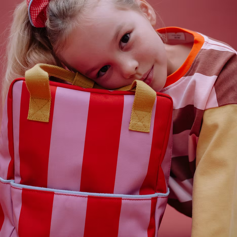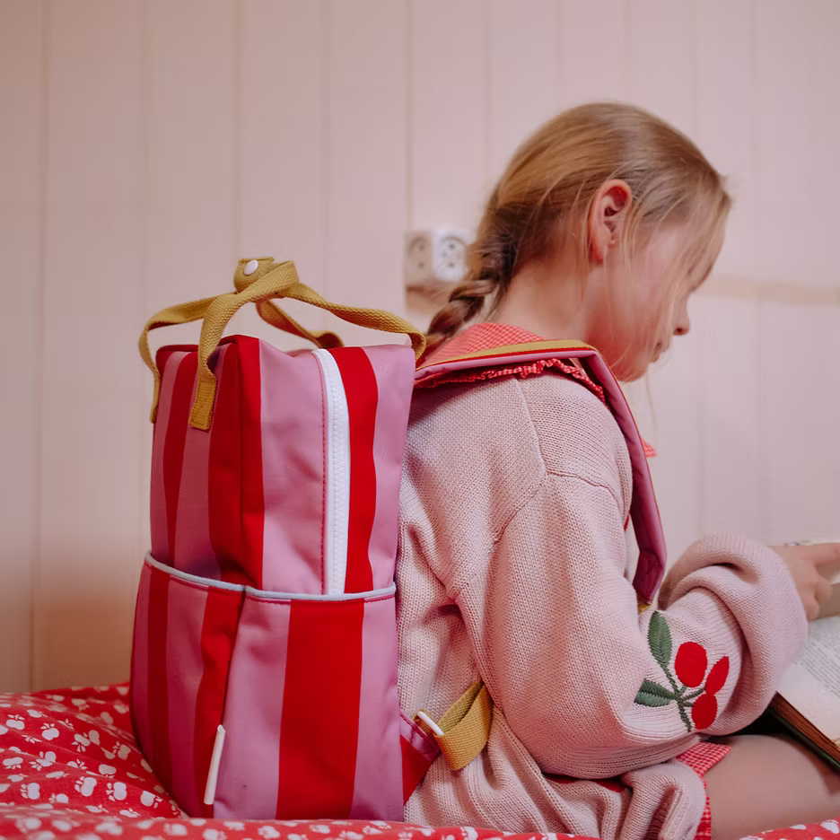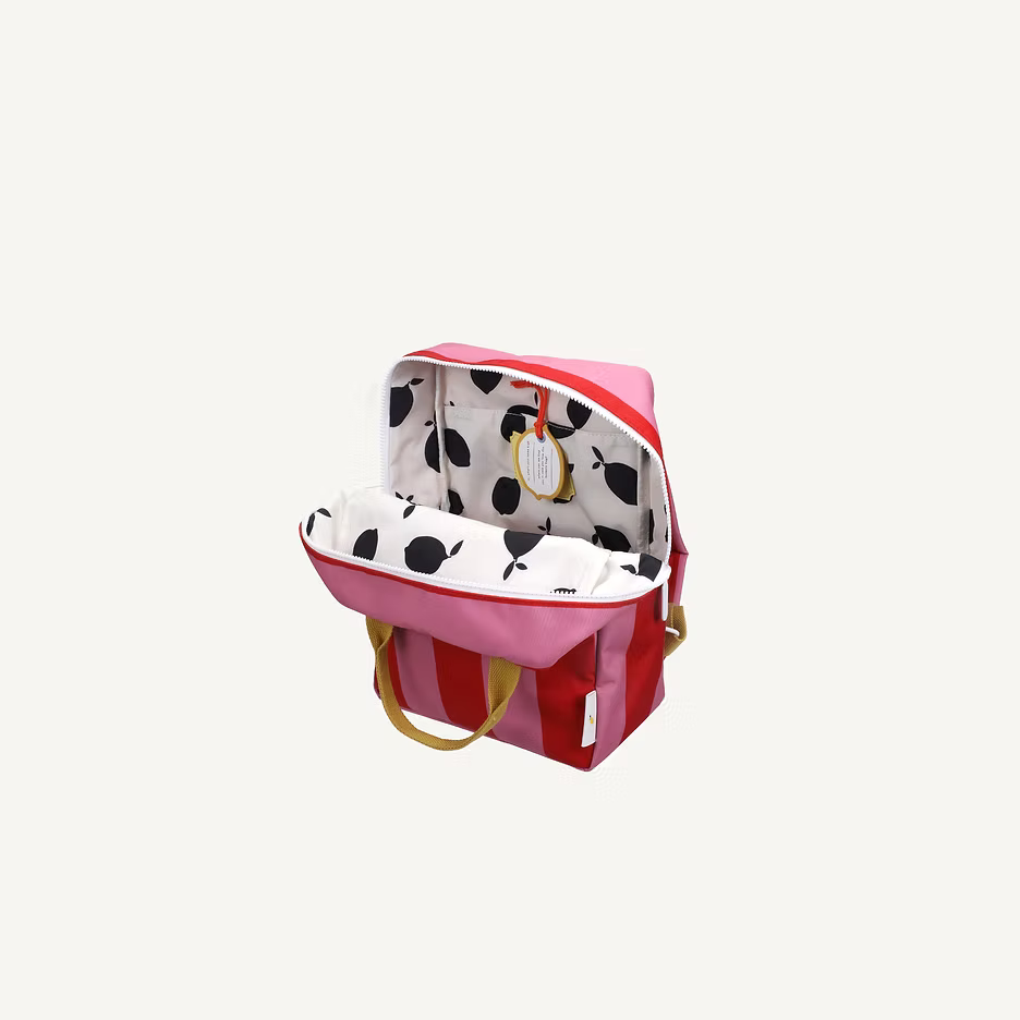 E vendosur pikërisht mes çantës sonë të vogël dhe asaj të madhe, kjo çantë shpine me madhësi mesatare është zgjedhja ideale. Ajo ka një xhep shtesë në pjesën e përparme, një shtresë të brendshme rezistente ndaj ujit me një model të vizatuar me dorë dhe rripa shpatullash të rregullueshëm. Në pjesën e brëndshme do të gjeni një mbajtëse elastike e pershtatshme për një shishe dhe në pjesën e pasme një xhep të madh që mbyllet me ngjitëse velkro. Kjo cantë tepër fuksionale ka gjithashtu një xhep të madh të jashtëm me zinxhir ku mund të mbani aksesorët e domosdoshëm të shkollës apo të kopështit.