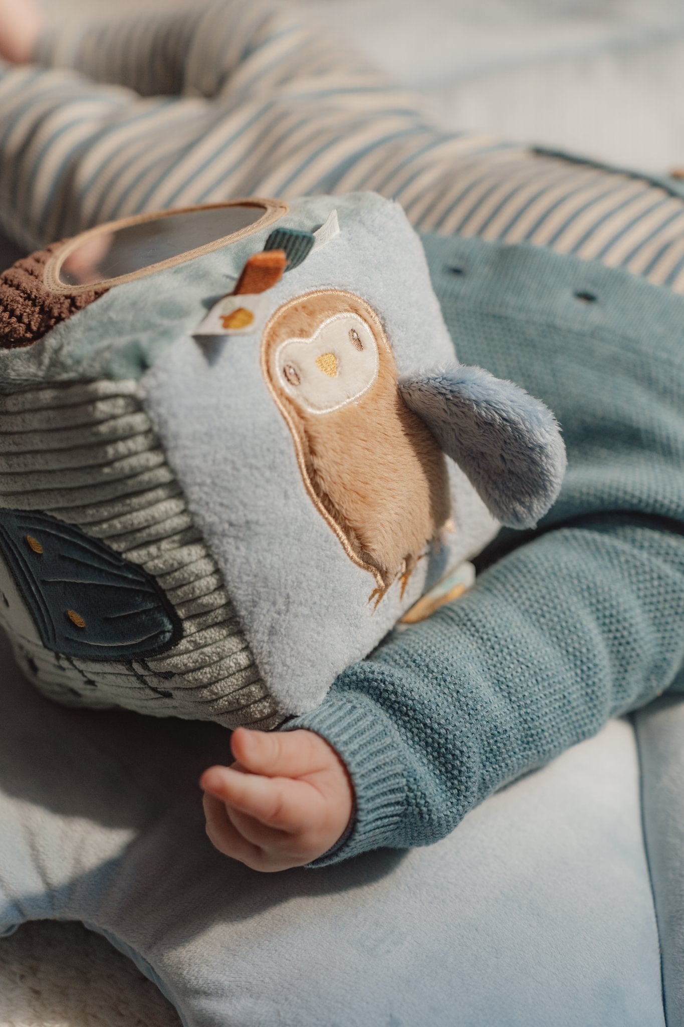 Ky kub aktiviteti ndihmon në zhvillimin e hershëm të foshnjës përmes teksturave dhe elementeve të ndryshme loje.